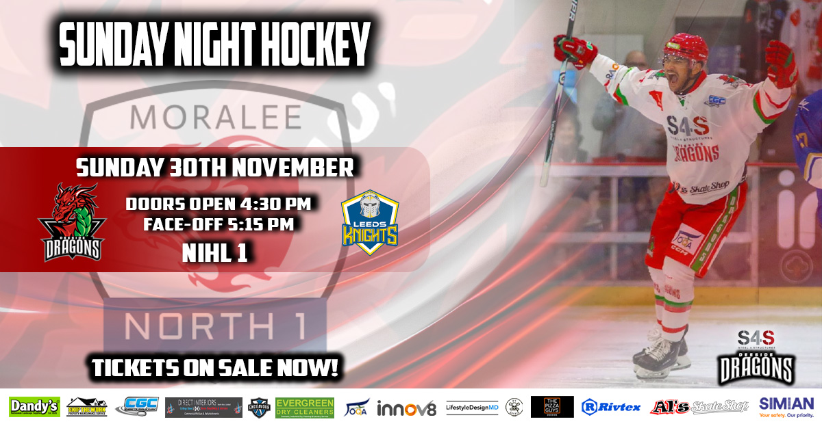 The Deeside Dragons are gearing up for an epic showdown as they take on the high-flying Leeds Knights on Sunday, 30th November! Doors swing open at 4:30 PM, and the puck drops at 5:15 PM sharp—you won’t want to miss a second of this!